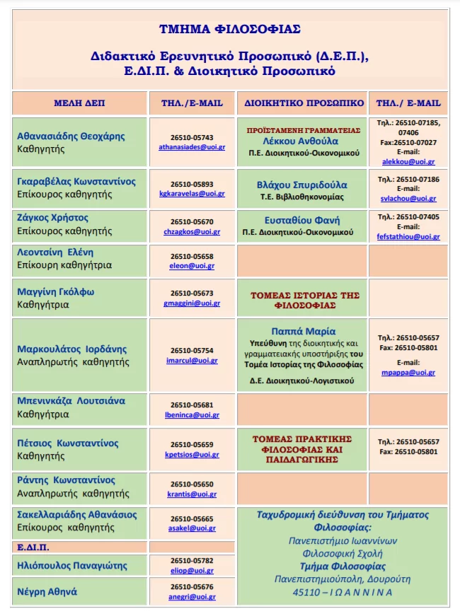 Όργανα του Τμήματος Φιλοσοφίας είναι: